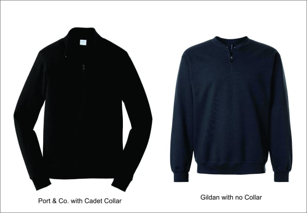 1x1 rib with spandex, varsity collar, cuffs and bottom band